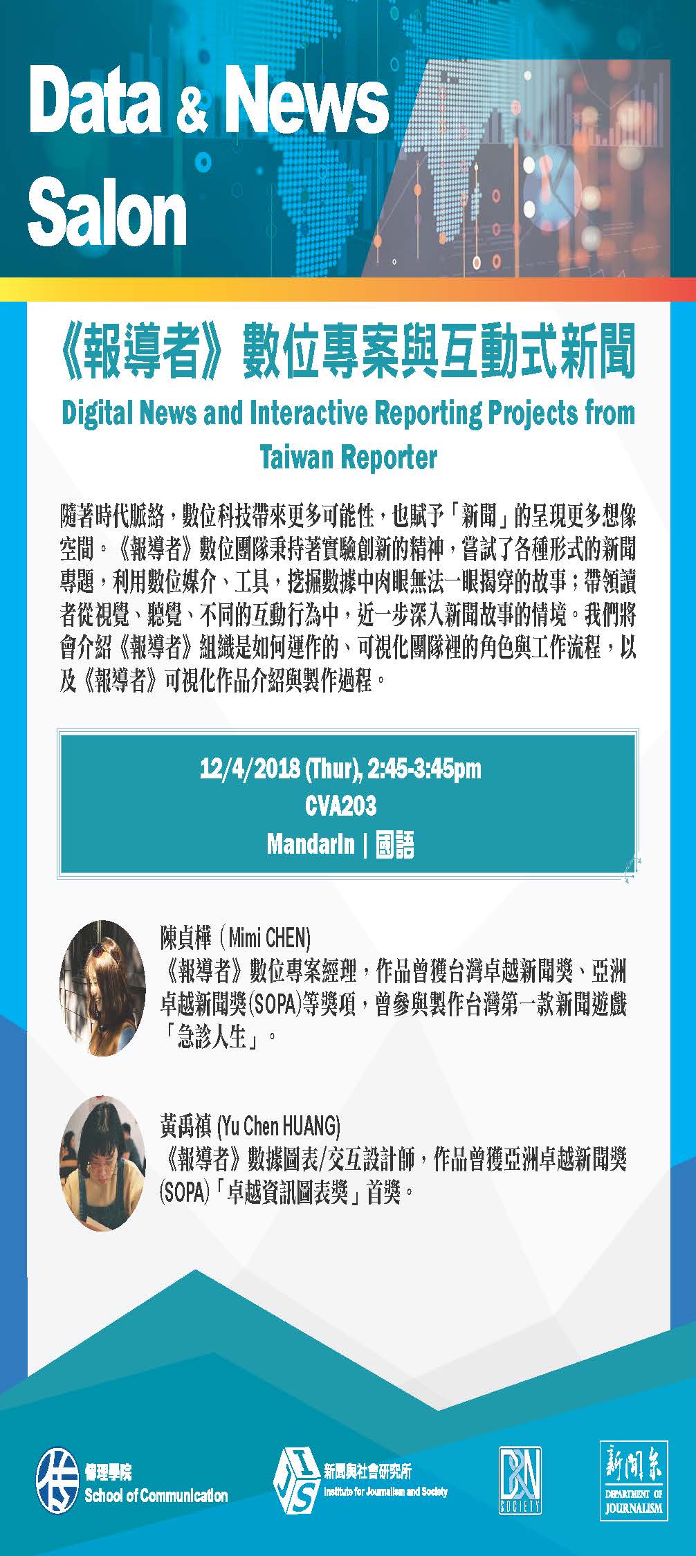 Mimi Chen - Digital News Manager / Reporter Huang Yu Chen - Data Designer / Reporter |
