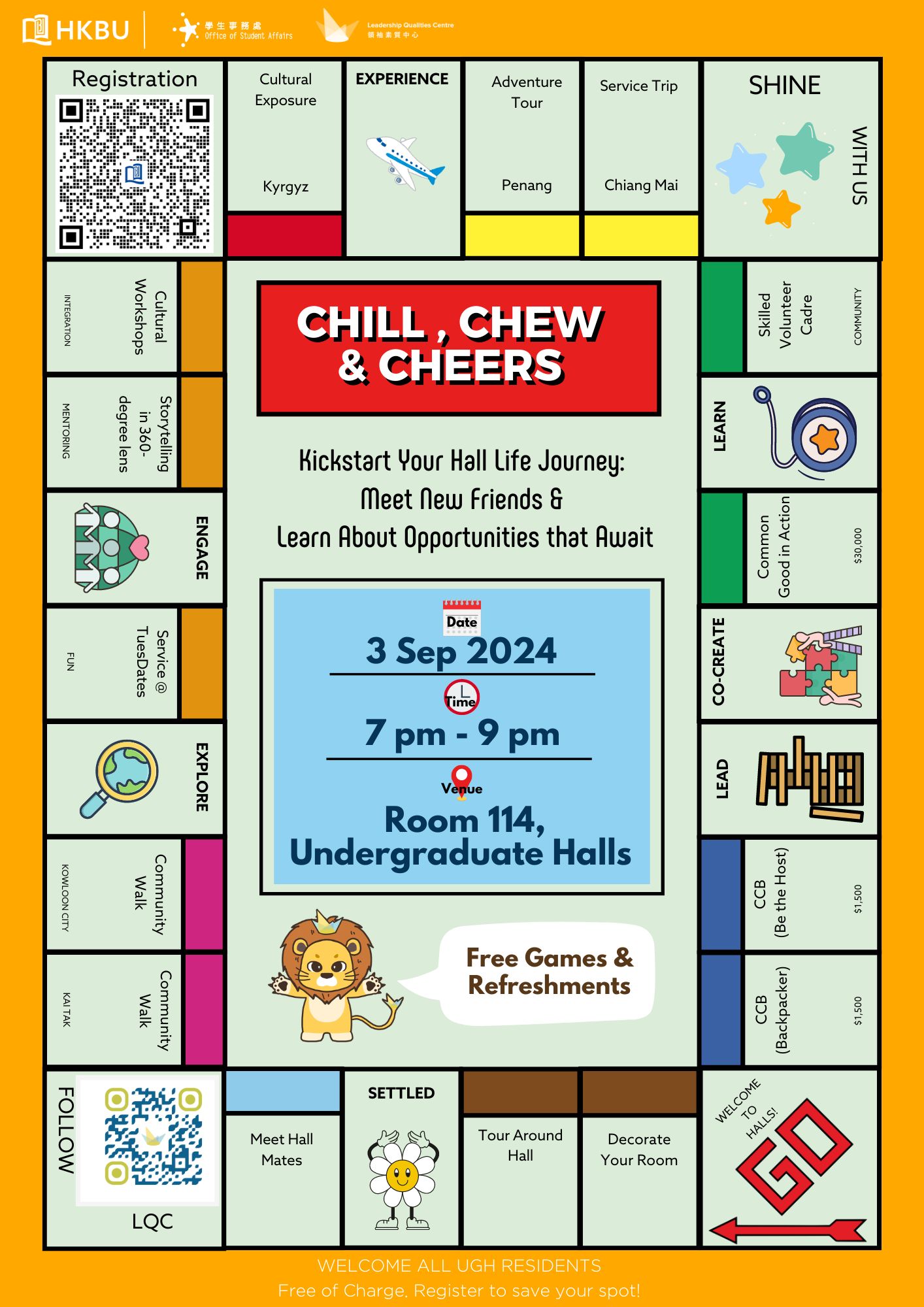 Chill, Chew and Cheers - Kickstart Your Hall Life Journey: Meet New Friends & Learn About Opportunities that Await
