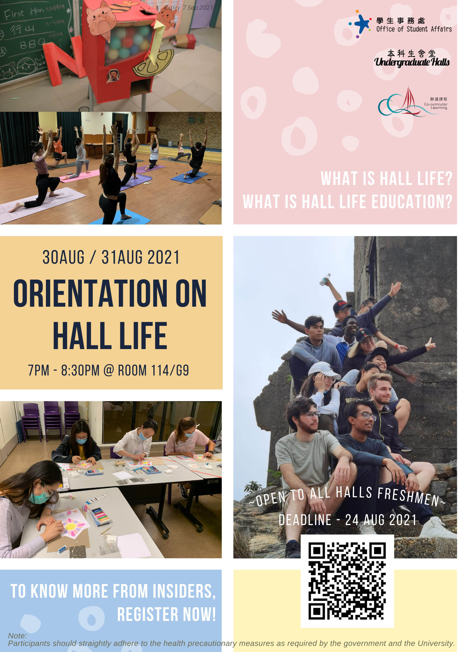 2021-08-31 19:00 - 2021-08-31 20:30 Venue: Room 114 or G9, Undergraduate Halls |
