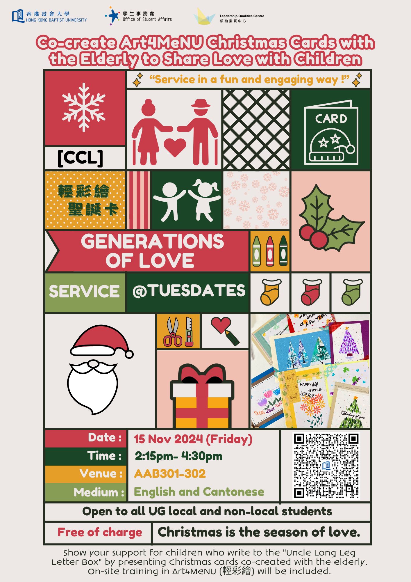 [CCL] Service @ TuesDates - Generations of Love : Co-create Art4MeNU Christmas Cards with the Elderly to Share Love with Children