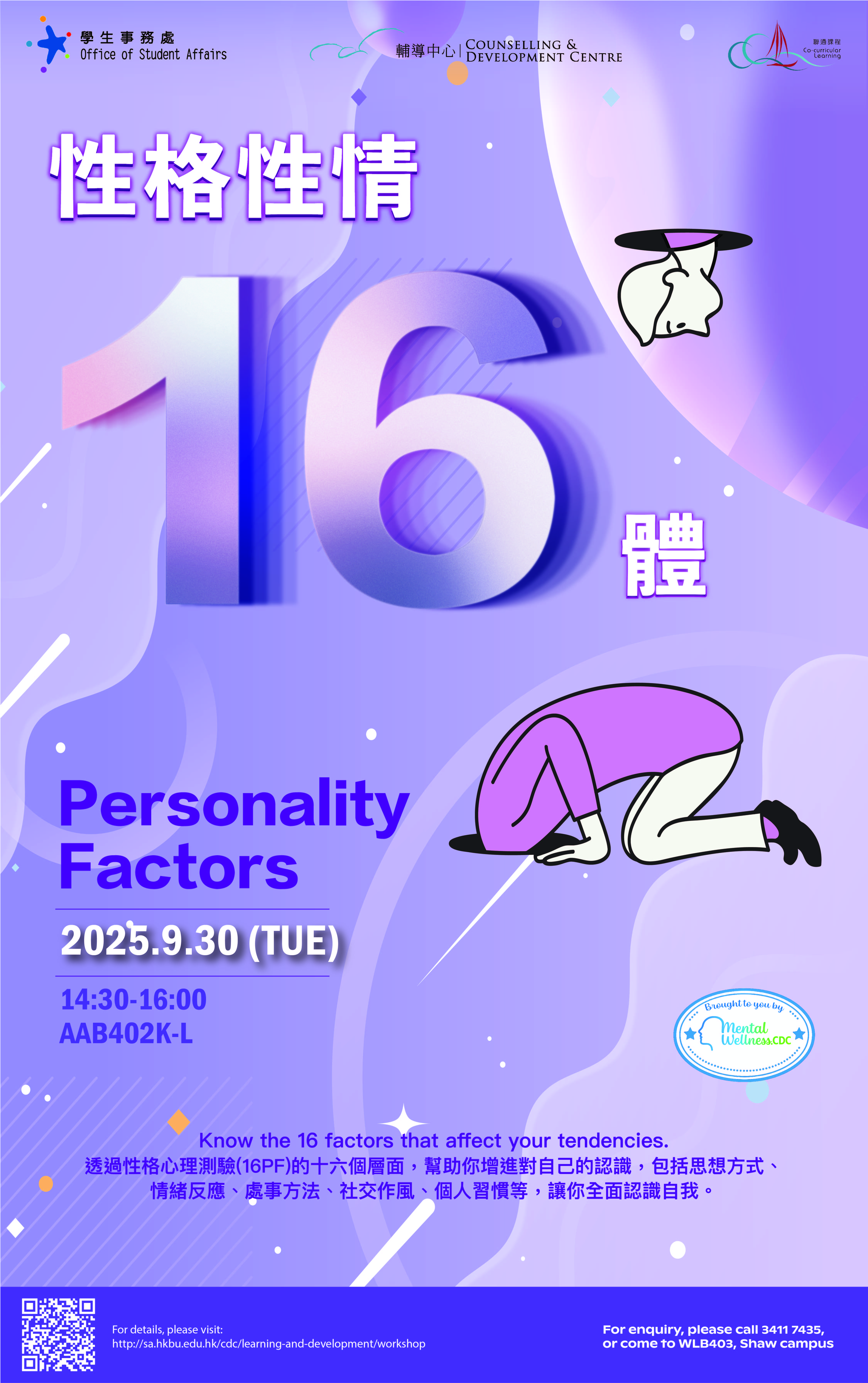 2025-09-30 14:30 - 2025-09-30 16:00 Venue: AAB402K-L, Baptist University Road Campus |