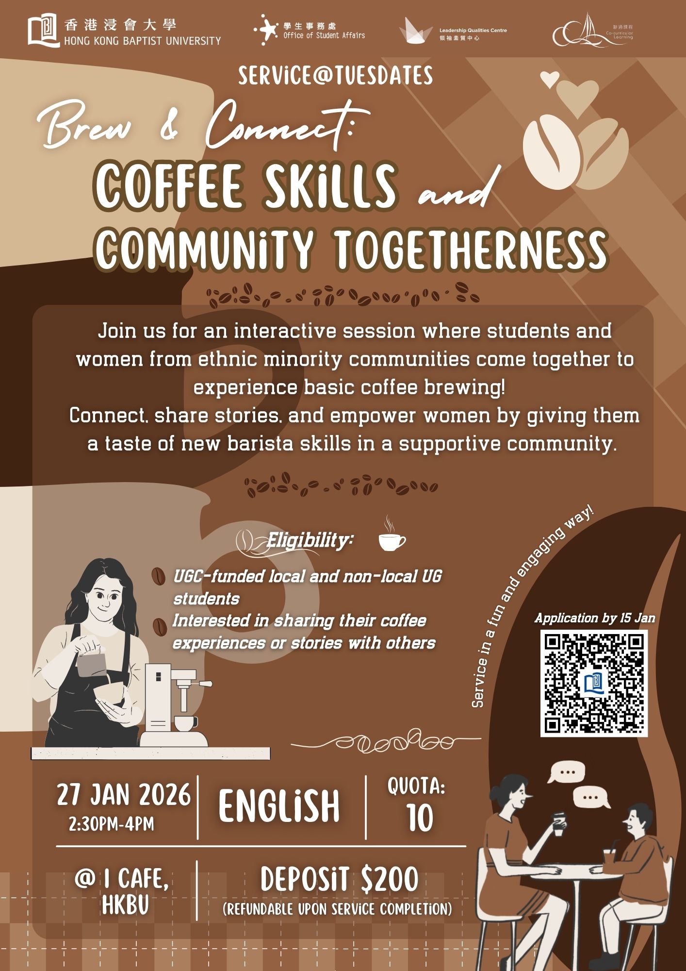 Eligibility: UGC-funded local and non-local undergraduate students who enjoy coffee and are interested in sharing their coffee experiences or stories while chatting with women from ethnic minorities.